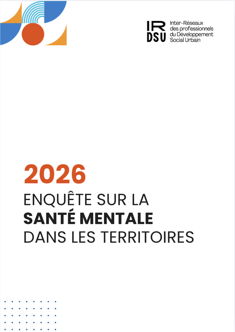 Rapport d’enquête : La santé mentale dans les quartiers prioritaires L’IRDSU publie les résultats de son enquête flash menée auprès de 251 professionnel·le·s du développement social et urbain. Ce rapport dresse un état des lieux des enjeux liés à la santé mentale dans les territoires fragilisés, en mettant en lumière : Les populations les plus […]